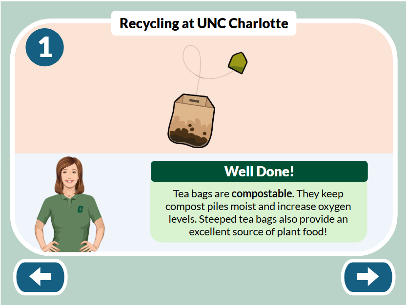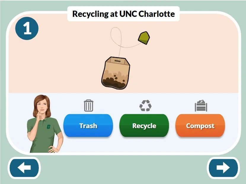 To support a department’s transition from in-person onboarding to a self-paced eLearning module, I developed an interactive course using Articulate Rise. A key focus of the course was highlighting the department’s commitment to sustainability. In the previous in-person sessions, a guest speaker demonstrated how to properly sort waste on campus and led new employees through sorting activity.